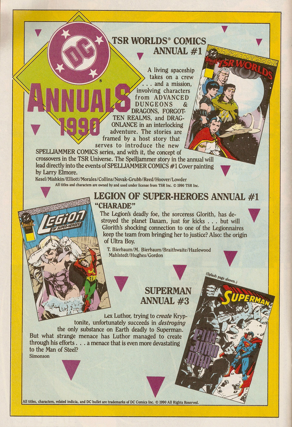 Ad- 1990 Annual A If you are looking at this ad and thinking, “Am I crazy?  Didn’t Superman Annual #3 come out in 1991?  And wasn’t it part of that whole Armageddon 2001 thing?”