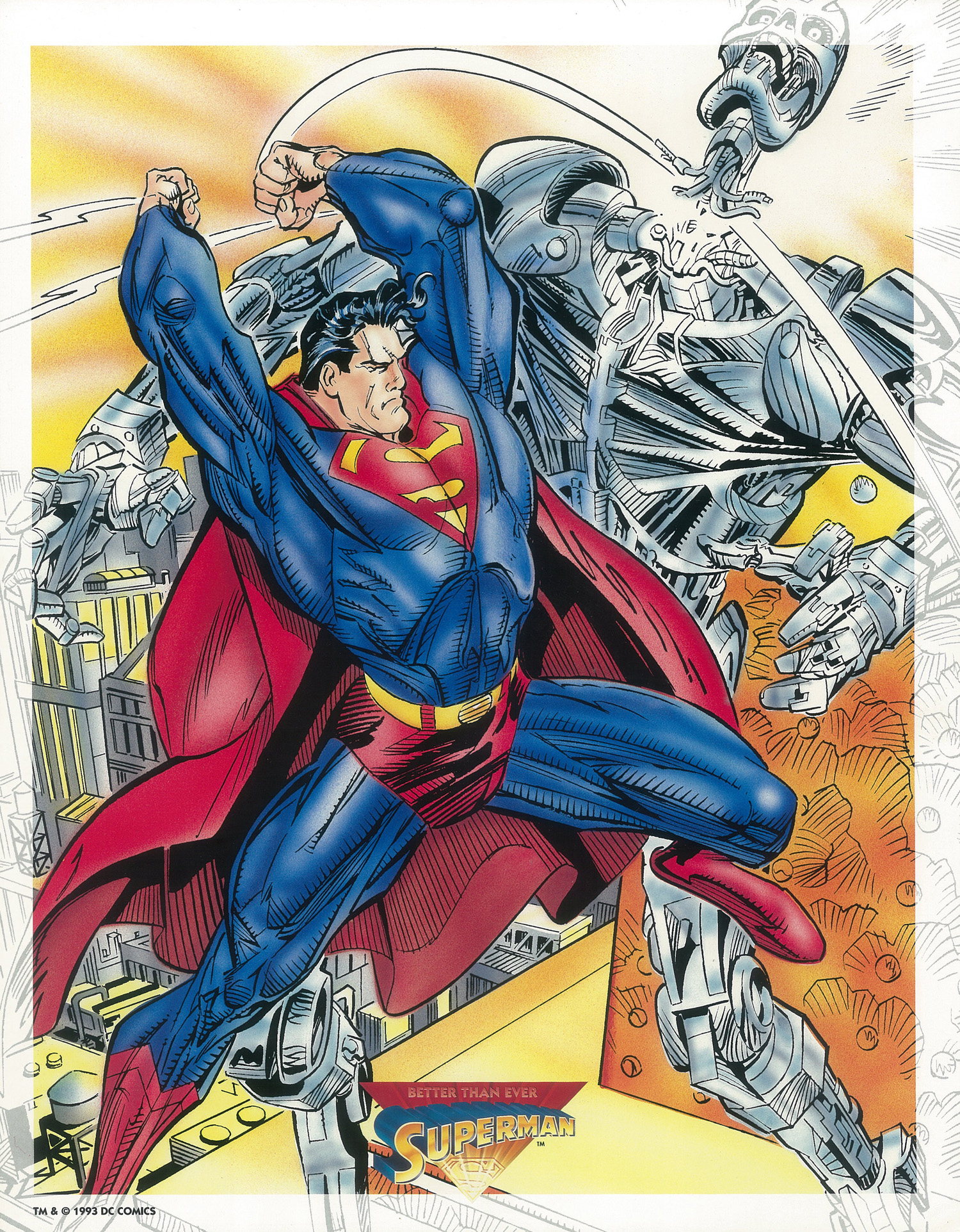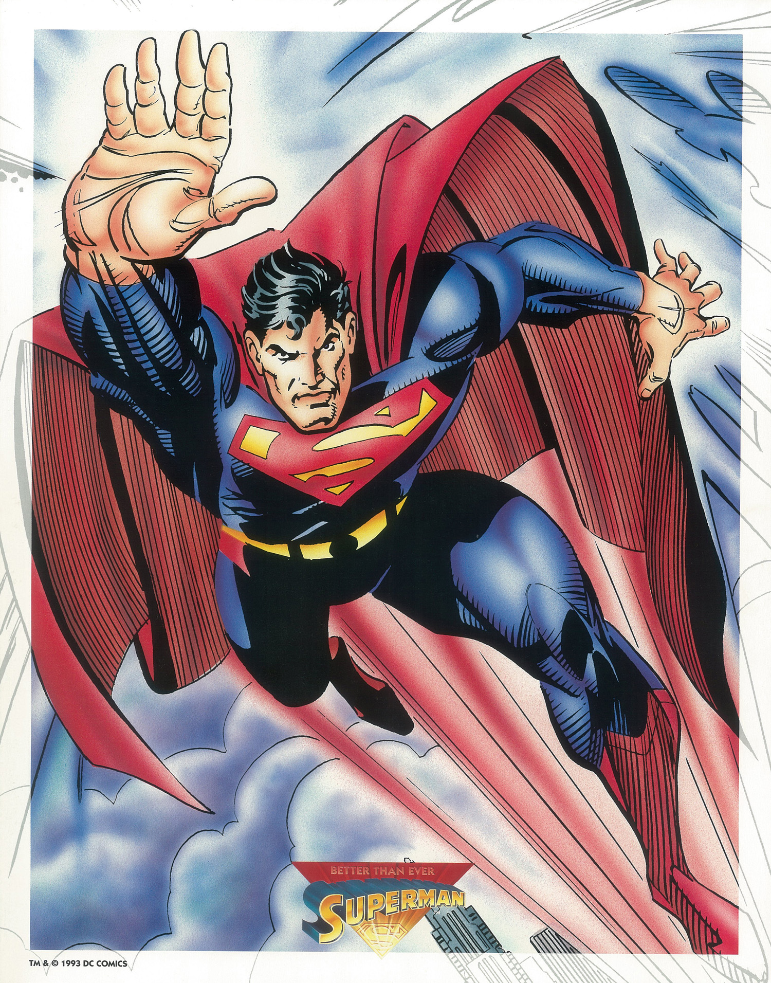 The tag line for most of this merchandise was a triangle with the words, “Better Than Ever” written inside. I may be misremembering but some neat stuff came out under this banner. One of the more interesting artifacts of this time period was a limited edition portfolio of eight 11 x 14 illustrations of the world’s first super hero and if it sounds like I am quoting directly from the package it’s because…well…I am quoting directly from the front of the package.